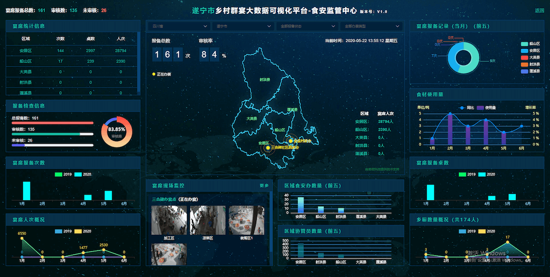 遂寧市鄉(xiāng)村群宴大數(shù)據(jù)可視化平臺-食安監(jiān)管中心