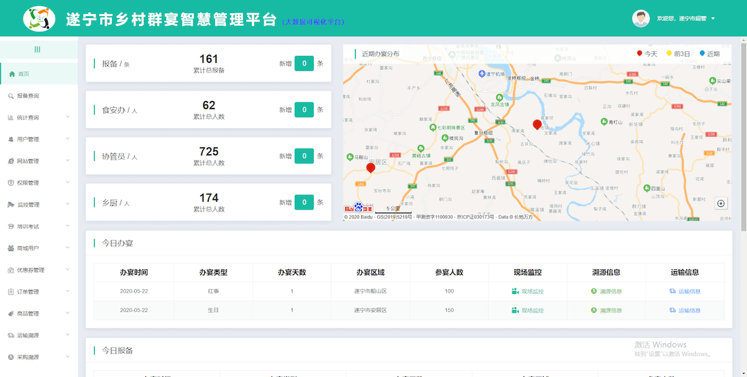 “互聯(lián)網(wǎng)+農(nóng)村群宴”數(shù)字化食安監(jiān)管云平臺——“遂寧市鄉(xiāng)村群宴智慧管理SaaS平臺”