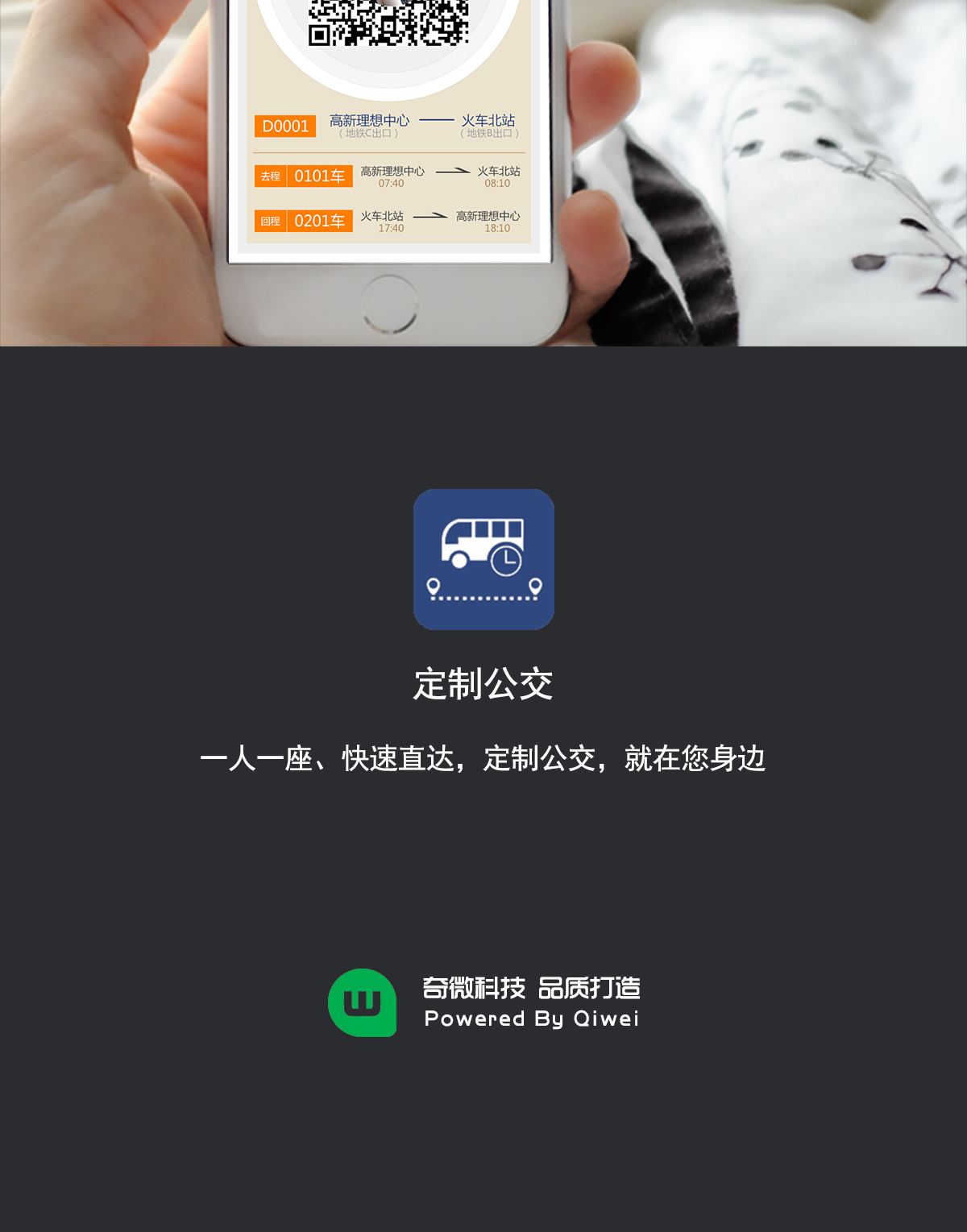 《定制公交》是成都公交集團解決居住地和上班地之間往返規(guī)模出行的需求的推出的全新的出行方式,即相同且相對集中地點的市民通過定制組合搭乘的方式完成居住地和上班地之間一站式快速轉移,成都市定制公交將根據(jù)需求開展定制公交。定制公交可以走公交專用道,具備優(yōu)先通行的優(yōu)勢;采用一人一座、快速直達、優(yōu)價優(yōu)質的服務方式;價格相對優(yōu)惠,費用低于自駕車和出租車。為廣大乘客提供安全、快捷、舒適、環(huán)保的公交出行服務。