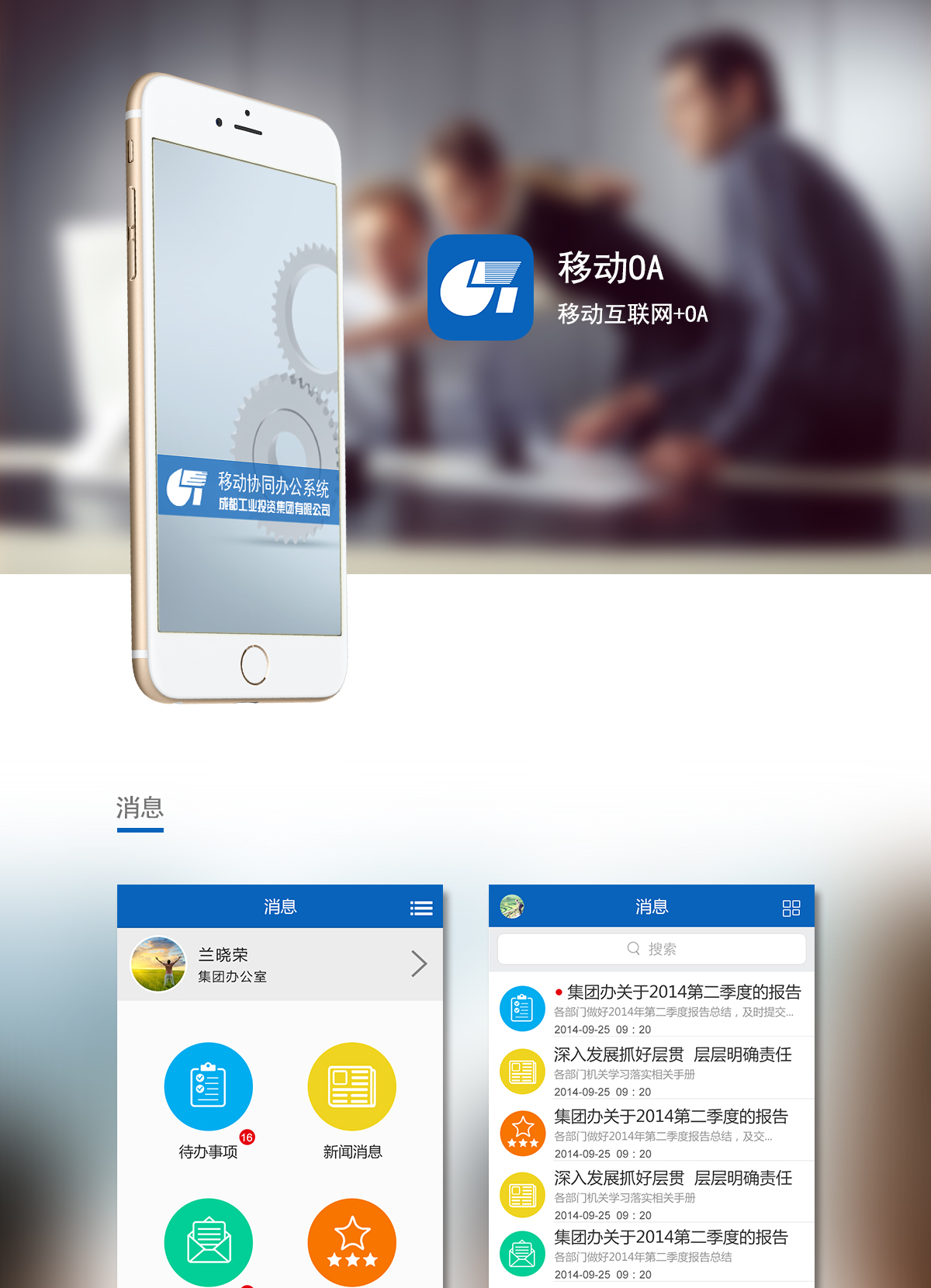 《移動(dòng)OA》是成都工業(yè)投資集團(tuán)有限公司打造的“移動(dòng)互聯(lián)網(wǎng)+辦公”的內(nèi)部管理運(yùn)營(yíng)手機(jī)APP,通過(guò)移動(dòng)互聯(lián)網(wǎng)模式下的輕辦公、云辦公,將之前繁瑣復(fù)雜的辦公流程移動(dòng)化,無(wú)紙化,同時(shí)提高集團(tuán)內(nèi)部管理效率,降低集團(tuán)運(yùn)營(yíng)成本,讓集團(tuán)的效益在現(xiàn)有人員編制不增加的情況下大幅提高。