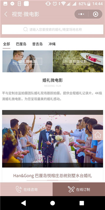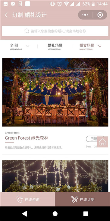 今年芊與婚禮和奇微科技合作后,一款專屬于芊與婚禮的小程序終于“出世”啦!也就是說,你在手機(jī)微信上也能隨時(shí)隨地聯(lián)系芊與婚禮了!當(dāng)然也可以自主地選擇你想要的婚禮,有任何需要都可以點(diǎn)擊小程序下方的「在線咨詢」或者「在限訂制」。