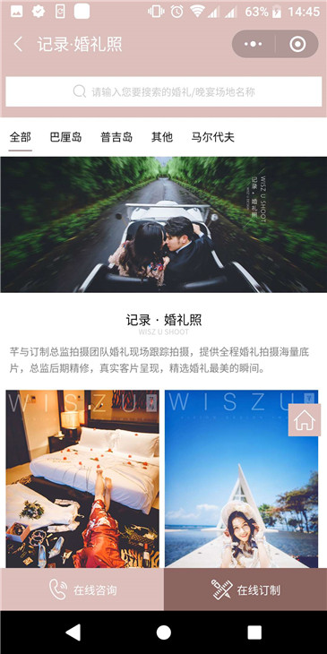 當(dāng)前位置: 首頁 >> 新聞資訊 >>【精選案例】成都小程序開發(fā):WISZU芊與婚禮,讓您理想的婚禮成為現(xiàn)實(shí)!打造海外浪漫婚禮!