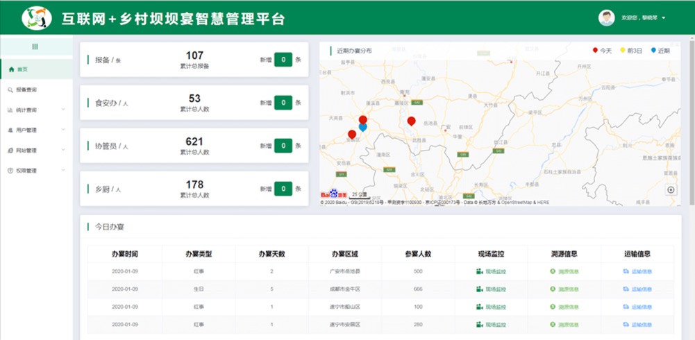 “奇微科技”聯(lián)合“龍微數(shù)科”自主研發(fā)的“互聯(lián)網(wǎng)+鄉(xiāng)村壩壩宴智慧管理平臺(tái)”數(shù)字化食安監(jiān)管信息系統(tǒng),將保障四川更多地區(qū)的“壩壩宴”安全。