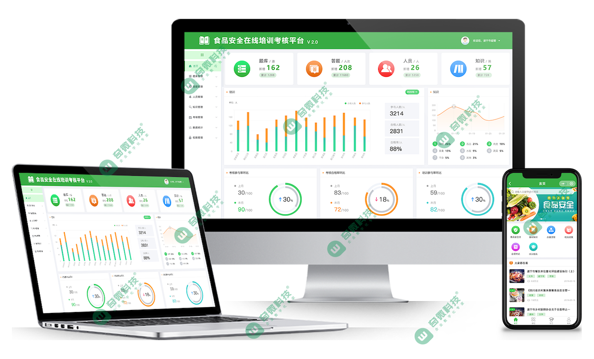 根據(jù)《中華人民共和國食品安全法》等法律法規(guī)和相關(guān)規(guī)定,運用互聯(lián)網(wǎng)等信息化手段對食品相關(guān)從業(yè)人員、監(jiān)管人員、協(xié)管人員等進行食品安全法律法規(guī)及相關(guān)知識的培訓考核、資格認證等,推出食品安全在線培訓考核解決方案——“食品安全在線培訓考核平臺”信息管理系統(tǒng)。